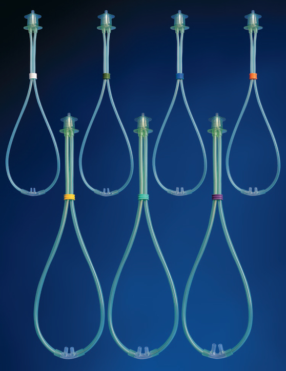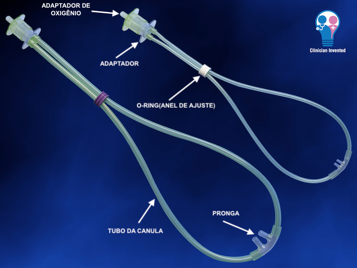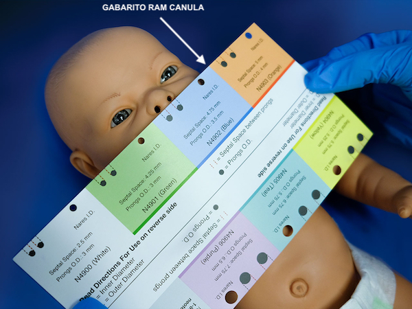 Cânula nasal para suporte respiratório em pacientes neonatais e pediátricos.
